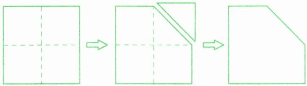 8. 如下图,将一张正方形纸对折两次,展开后通过剪裁得到一个五边形。这个五边形中有()个钝角,每个钝角是()°。