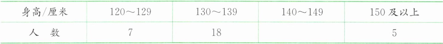 )厘米段的人数最少。(3)小兵的身高是141厘米,按从高到矮的顺序他可能排班上第(