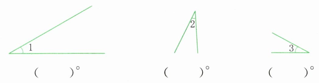 3. 度量一个角,角的顶点和量角器的中心重合,角的一条边对准内圈20°刻度线,另一条边对准外圈60°刻度线,这个角是(