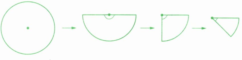 6. 如下图,将一张圆形纸片连续对折3次,得到的角是(