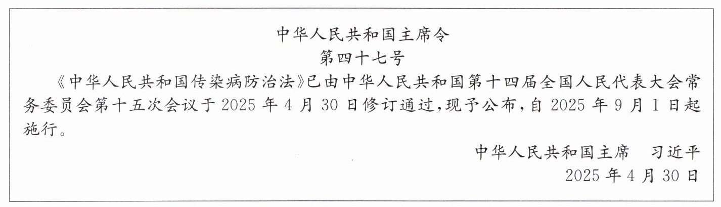 本题考查国家主席的职权。国家主席根据全国人大及其常委会的决定行使职权,包括公布法律、任免权、外事权和荣典权等。题干中《中华人民共和国传染病防治法》的修订通过是全国人大常委会的职权,国家主席根据全国人大常委会的决定公布法律,这体现了国家主席行使公布法律的职权是根据全国人大常委会的决定进行的。A选项表述错误,国家主席没有制定法律的权力;B选项错误,全国人大是最高国家权力机关,国家主席是国家元首,二者地位和职权不同;C选项本身表述正确,但与题干内容无关。因此D选项正确。