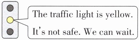 The traffic light is green. It's safe. We can go.(答案不唯一)