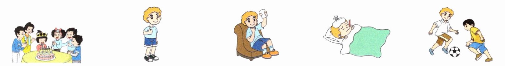 Look! This is Leo. He is an American boy. It is Monday today. He comes home from a football match. He is very tired and thirsty. He wants to drink some milk and go to bed. But at night, Leo is ill. He stays in bed. He takes some medicine. Tomorrow is Lucy's birthday. She has a birthday party at home. But Leo can't go to the party. He is very sad.
