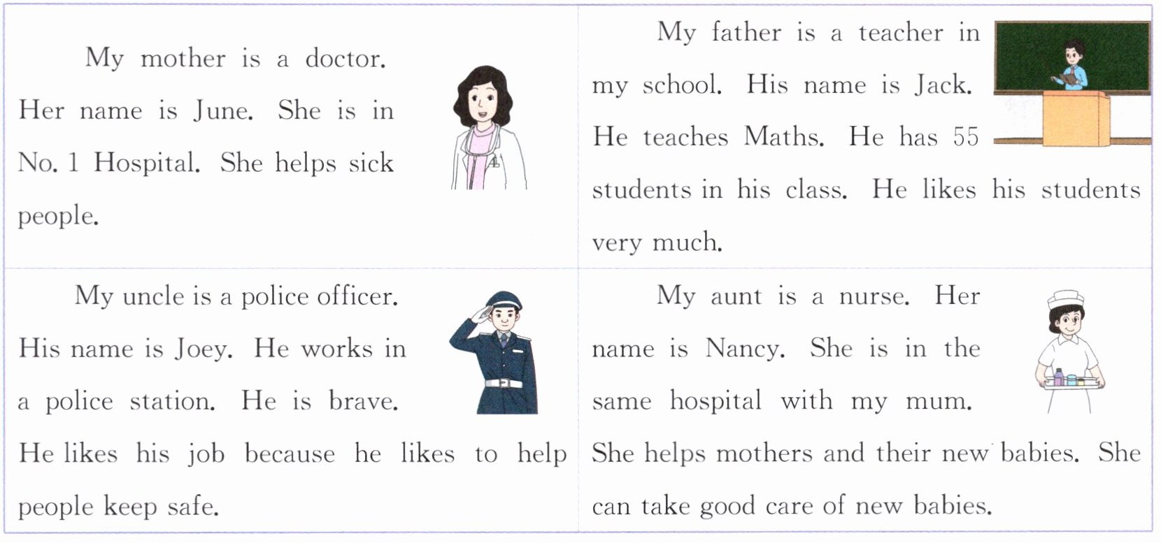 2. T 解析:材料中提到妈妈 June 和姑姑 Nancy 在同一家医院工作,妈妈是医生,姑姑是护士。